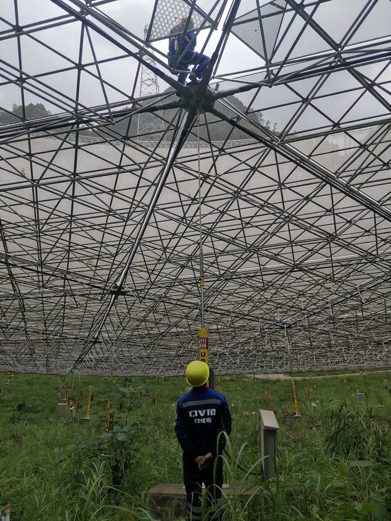 500米口径球面射电望远镜FAST项目是具有我国自主知识产权、世界最大单口径、最灵敏的射电望远镜,属国家重大科学工程,预计在未来30年内继续保持世界一流设备的地位。欧维姆公司作为FAST项目主体结构承建商,提供索网结构的设计、生产、施工及管养等。